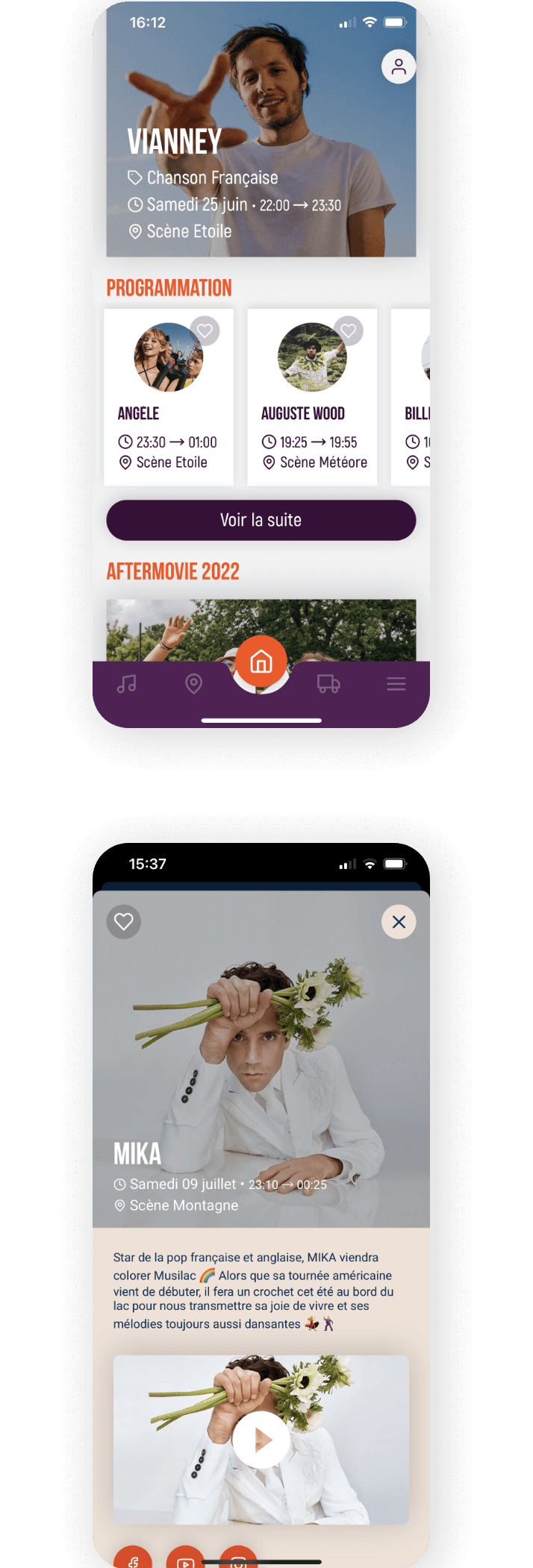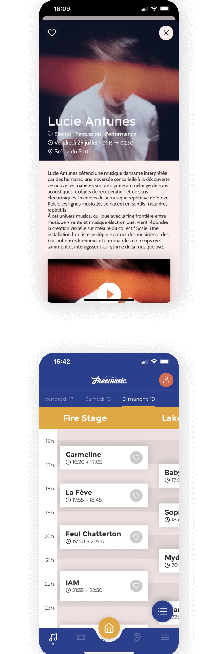 Une équipe Fragolabs est disponible et à l’écoute de nos besoins. Ils nous ont proposé une application au design et aux fonctionnalités particulièrement efficaces pour une expérience festival à portée de main.