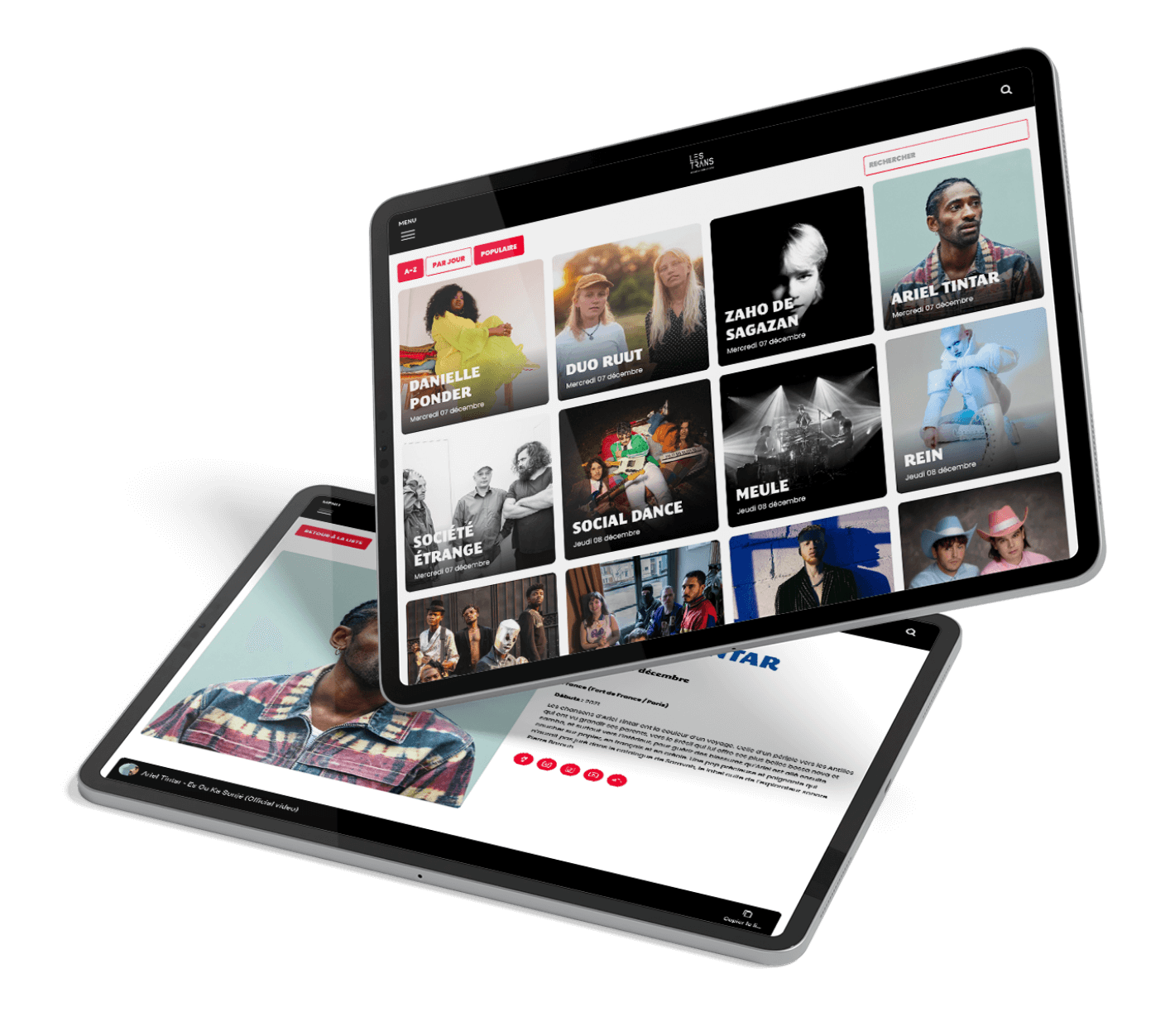 Fini la double saisie, intégrez la liste de vos artistes ou de vos temps forts sur votre site internet. Donnez la possibilité à votre public de trier par ordre alphabétique, chronologique ou par importance, et également de rechercher parmi votre programmation. Bénéficiez d’un affichage en grille ou en planning pour mettre en avant les horaires de passage.